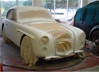 | Farina Jupiter E1 SA 109R is getting its top coat of paint, courtesy Pat Lockyer, the car's owner-restorer. | Mid to late January 2003 - Getting there...but lots of rubbing down still to do! |